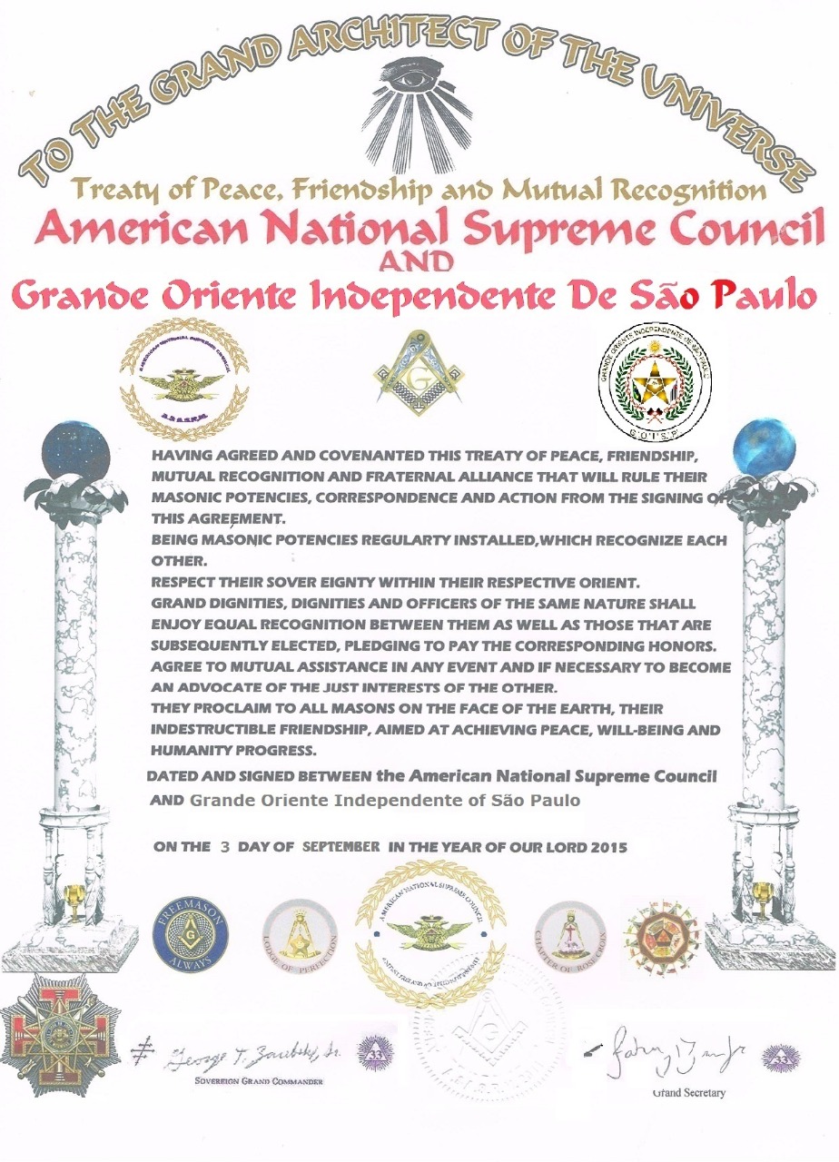Tratado de Amizade e Mutuo Reconhecimento - Amercian National Supreme Council e GOISP
